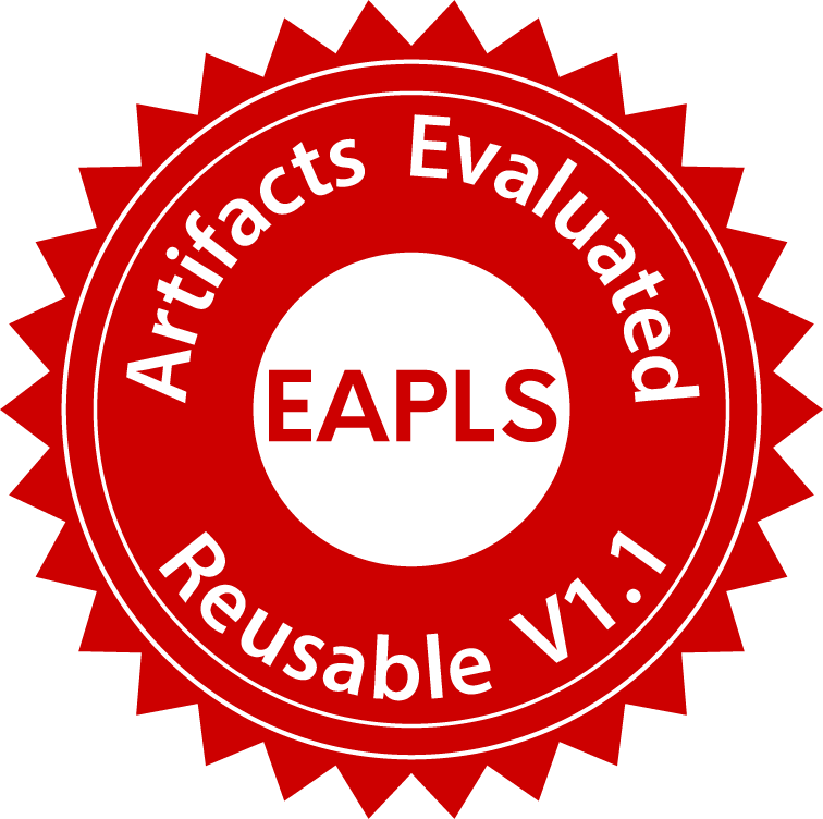 Disclaimer: the EAPLS badging scheme is based on and consistent with the ACM initiative. Upon an agreement with ACM, EAPLS adopted the design of the ACM badges Version 1.1 (August 24, 2020). However, ACM is not involved in the implementation or evaluation process in any way on behalf of EAPLS. See https://www.acm.org/publications/policies/artifact-review-and-badging-current for more details on the ACM’s badging scheme and overall initiative.